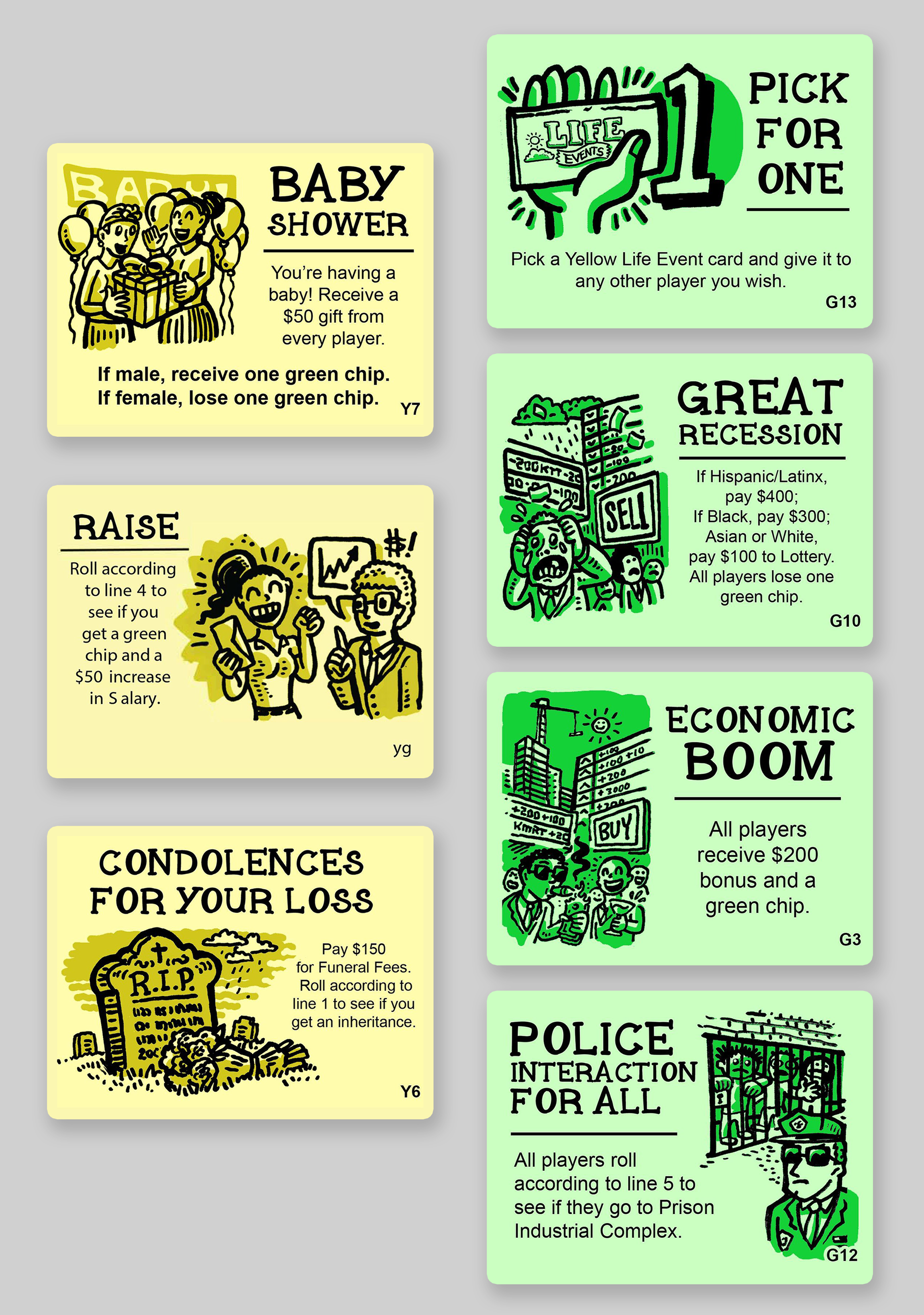 My work focused exclusively on the board and card art, bringing the game's core themes to life. The illustrations were crafted to be clear, fun, and accessible, helping players understand how systemic structures impact individual outcomes in a tangible way. The board art was designed in a comic style to guide players through the game's journey, reflecting the realities of racial and gender pay gaps, housing discrimination, and other societal barriers. I was able to use my illustration skills for a purpose-driven mission, transforming a historically transactional gaming experience into a compelling, hands-on learning experience for students and educators alike.