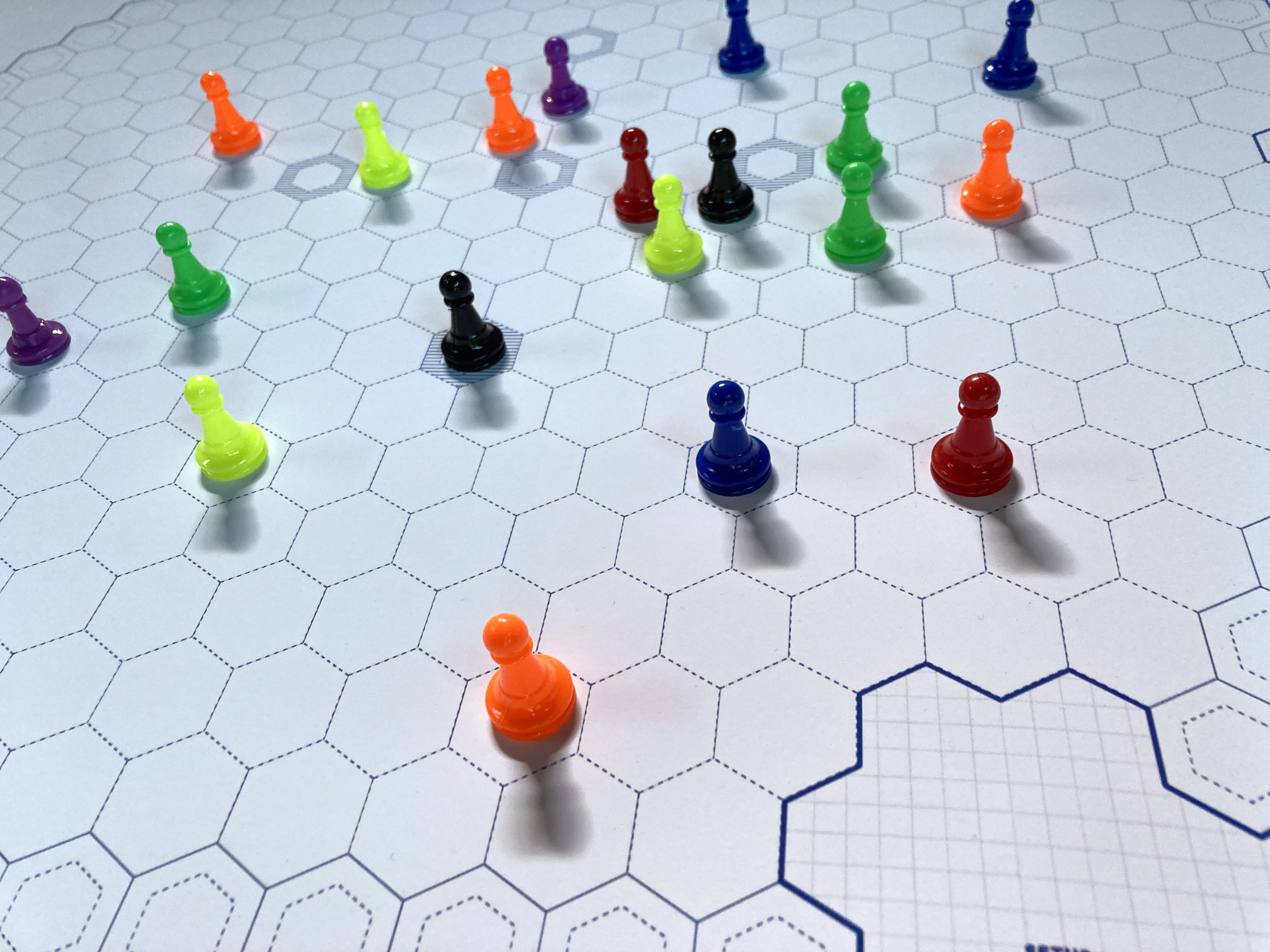 DB87 begins with a simple objective: be the first to score 4 points. Players move their colored pieces across a hex-based board, aiming to reach the opposite side. But the game quickly devolves into delightful chaos. Whenever a player scores a point, they get to propose a new rule—anything they can imagine. The catch? Voting "Nay" on a proposal sends one of your pieces back to start, heavily incentivizing collaboration and negotiation. This creates a game that's limited only by the players' imaginations. As the game progresses, the rules become more and more capricious, with players introducing wild new mechanics, pieces, and player-specific constraints. The core of DB87 is its social strategy and negotiation, making it a highly replayable and memorable experience that is truly a one-of-a-kind.