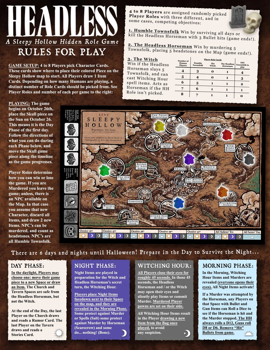 As a lifelong fan of social deduction games, I was thrilled to take on this project. Headless is a strategic hidden-role board game for 4 to 8 players, taking the classic mechanics of games like Mafia and Secret Hitler and setting them in the eerie, comedic world of Sleepy Hollow. This project was a chance to blend suspense and strategy with a touch of dark humor, all while building a complete game from the ground up.